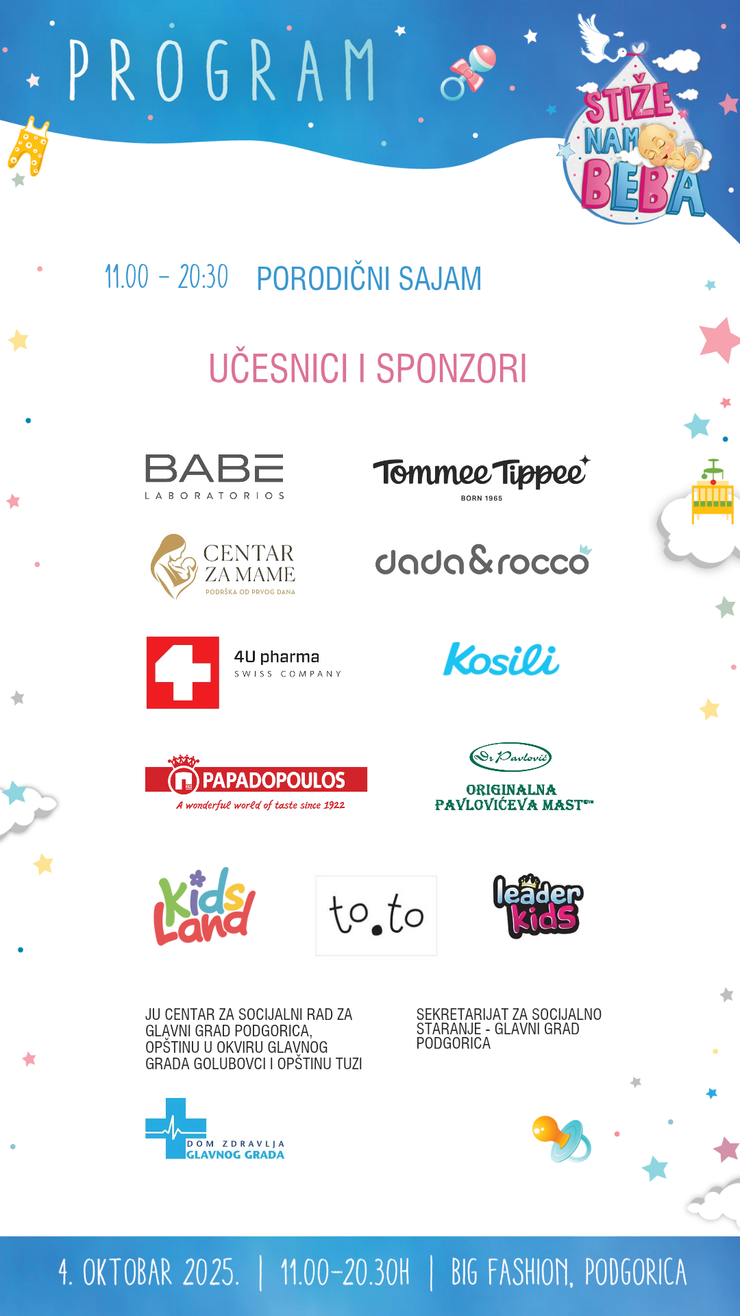U subotu, 4. oktobra, u centralnom atrijumu BIG Fashion Podgorica centra, biće organizovano dvanaesto izdanje Info dana o trudnoći, dojenju i pripremama za novog člana porodice, Stiže nam beba.
