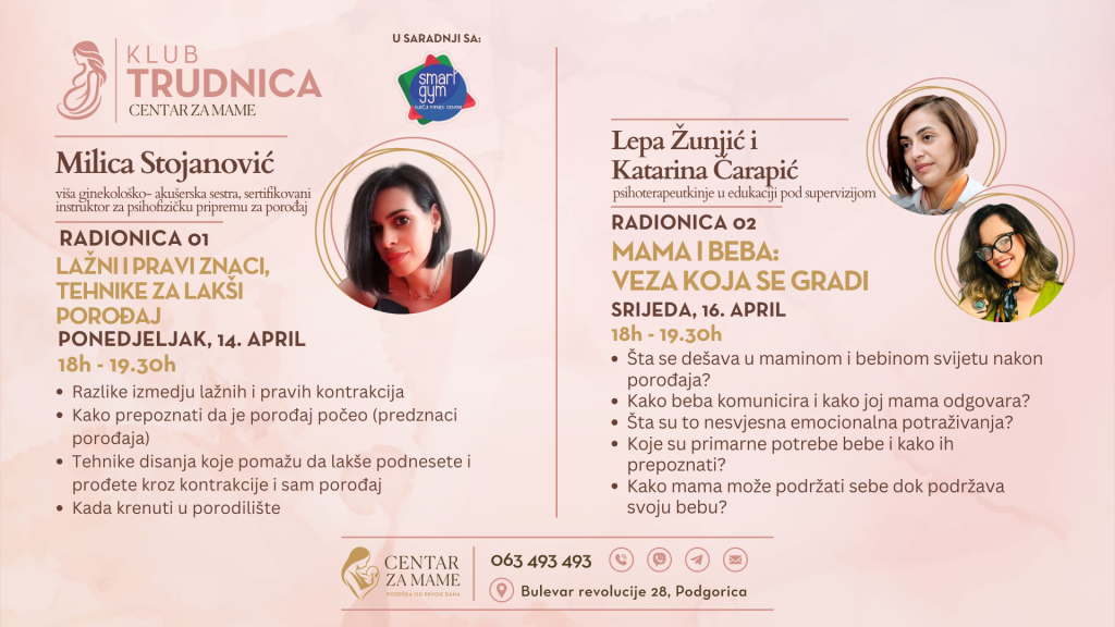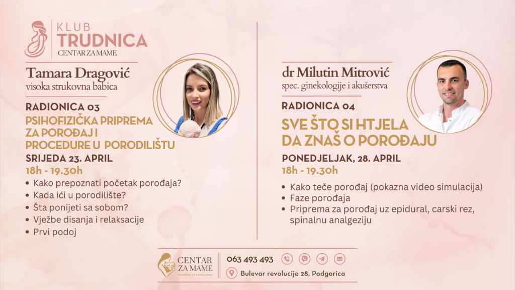 IX ciklus Škole za trudnice u okviru Kluba trudnica u Centru za mame kreće u ponedjeljak, 14. aprila.