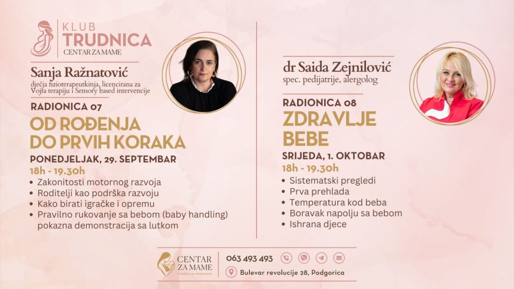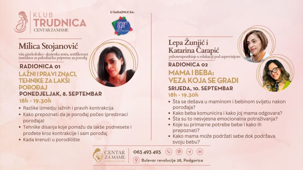 XII ciklus Škole za trudnice u okviru Kluba trudnica u Centru za mame počeće 8. septembra.