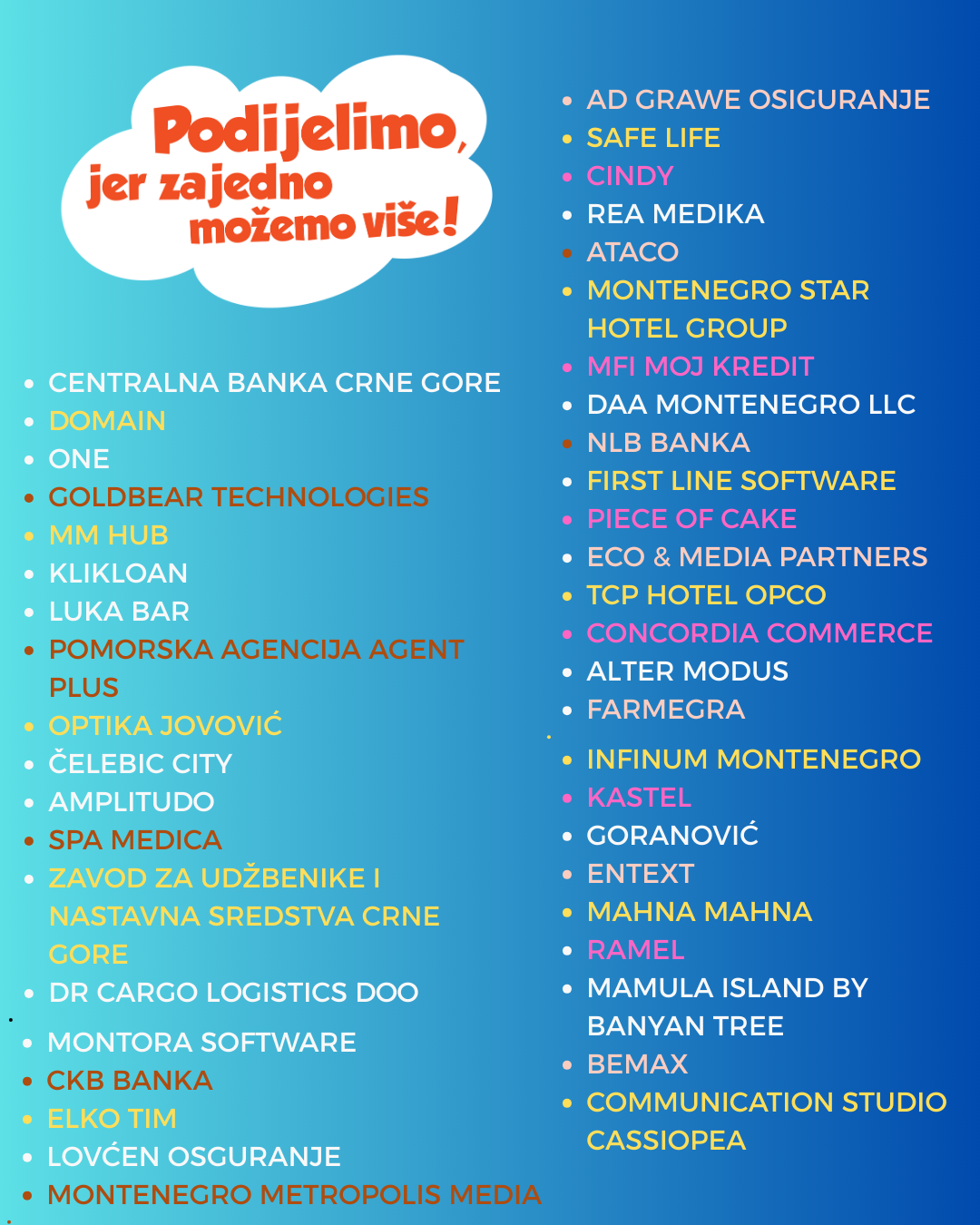 “Još jednom smo pokazali da su humanost, solidarnost i empatija vrijednosti koje krase crnogorsko društvo, jer zajedno, ujedinjeni, možemo činiti dobro i velike stvari”, kazala je Marija Manja Jovović, direktorica Fondacije “Čini dobro”.